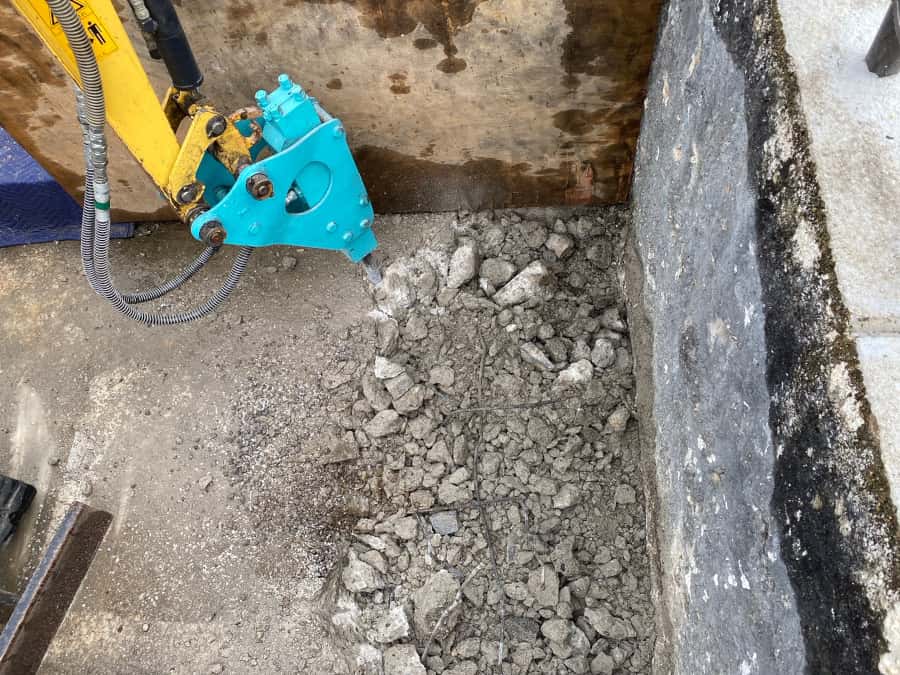 コンクリート部分をはつって撤去を進めたところです。基礎の下の砕石などもすべて取り除きます。