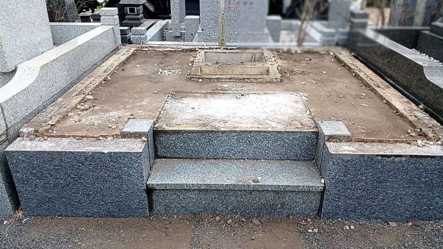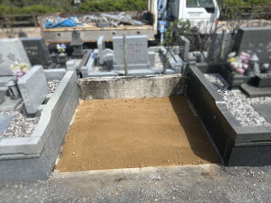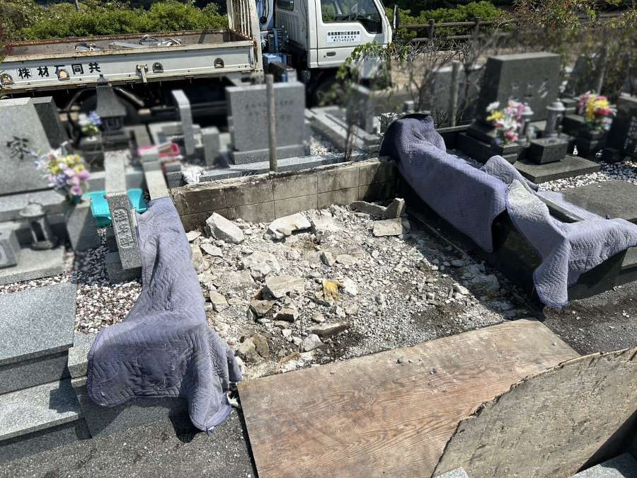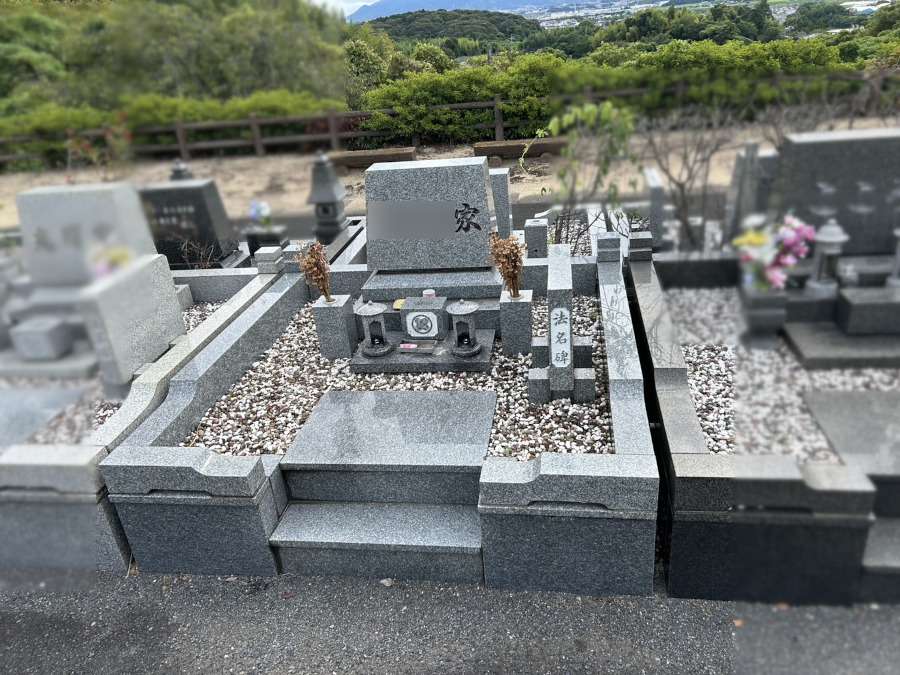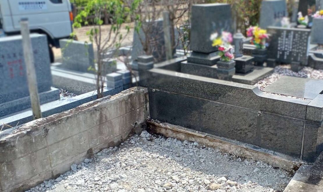 大きく傾いたお墓を扉型納骨室のお墓へリフォーム。宗像市地域墓地